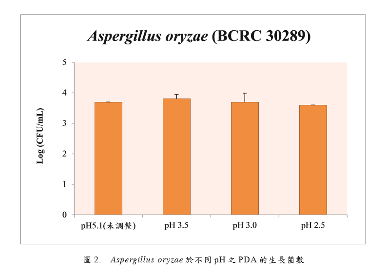 3.8亦可生長。由此可知酸化是一個有效 且可行的方法,但需再作改善,經(jīng)由再降低 pH至 3.5-2.5的PDA確實能有效抑制乳酸菌 活性,且不影響霉菌與酵母菌生長活性,因